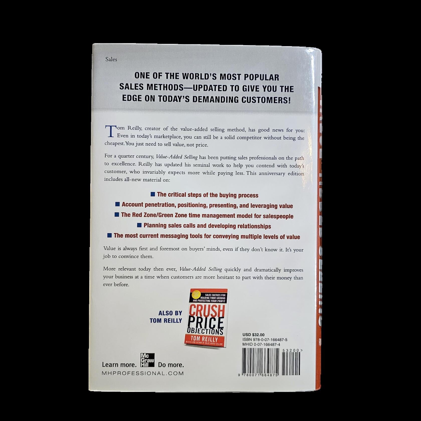 Your customers have made significant progress since the publication of Value-Added Selling twenty-five years ago. They are now more knowledgeable, proactive, and price conscious, regularly searching the internet for lower prices and demanding more value for their money. In response to a marketplace where offering deals has become the norm due to buyers' addiction to low prices, Tom Reilly has updated his sales classic. Reilly's pioneering value-added sales method, which has been successful for over two decades in all types of economic conditions, operates on two fundamental principles: adding value instead of cost, and selling based on value rather than price. This approach is essential for protecting profit margins in today's customer environment. Value-Added Selling equips you with the strategies and tactics necessary not only to close more sales but also to foster repeat business by understanding buyers' needs from their perspective and defining "value" accordingly. Reilly guides you in building a master plan that aligns your selling efforts, creating effective sales tools to communicate your value proposition, and executing successful value-added sales calls. Furthermore, he teaches you how to connect with and sell to decision-makers at the highest levels and increase customer retention by consistently generating new value. While it is always possible to compete on price and secure a few sales, this approach comes at a cost. If you aspire to sell more products or services, achieve greater profitability, and reach a wider audience, it is crucial to resist the temptation to compete solely on price and instead shift your focus to delivering meaningful value. By consistently delivering meaningful value to your customers, adopting a higher level of competition than your rivals, and safeguarding your profits in any economic climate, Value-Added Selling empowers you to achieve success.